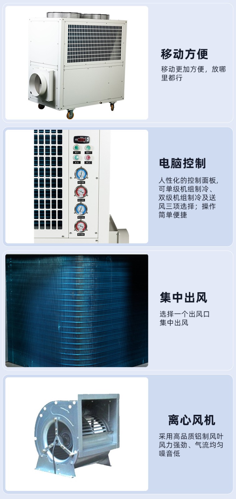 6、兩個(gè)冷風(fēng)口均可270度旋轉,適用于3-5個(gè)崗位的降溫