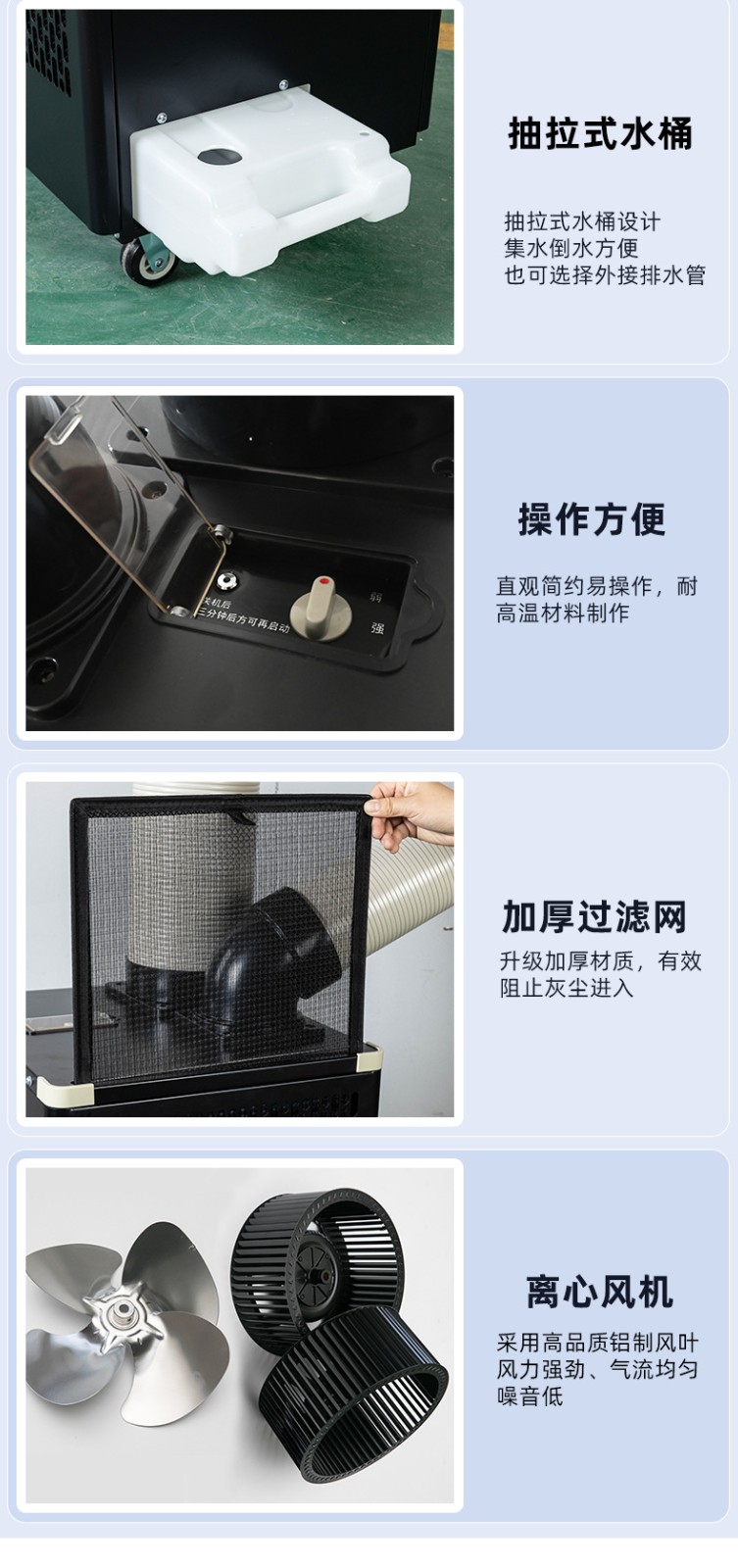 8、機身一體化設計,科學(xué)布局,可機內儲水桶積水.也可接水管排水,附帶除濕效果