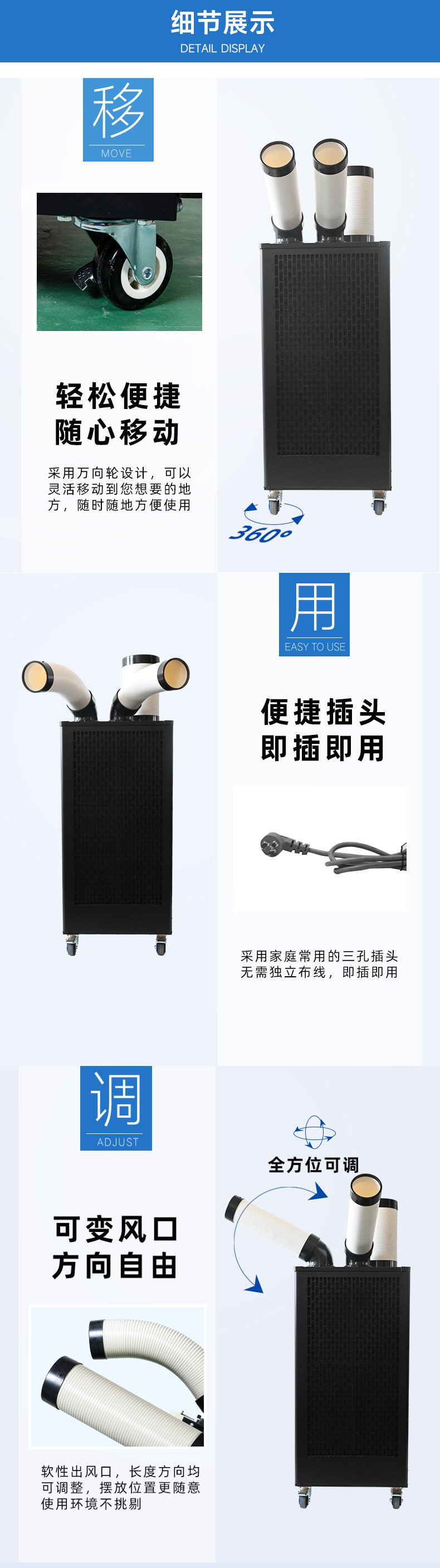 6、兩個(gè)冷風(fēng)口均可270度旋轉,適用于3-5個(gè)崗位的降溫